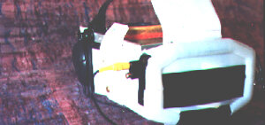 Casco Monoscopico ottenuto dagli scarti del prototipo Hp7, progettato in vr e installato come opera ad ArteFiera Bologna, titolo "Il Neotelefono", Commodore Amiga 500.
