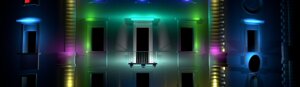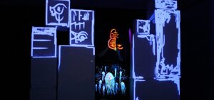 Con il mix in tempo reale di scene 3D appositamente create, il 3D mapping si libera del suo aspetto cinematografico e diventa una scenografia extra large in grado di interagire totalmente con il lavoro di musicisti e dj.